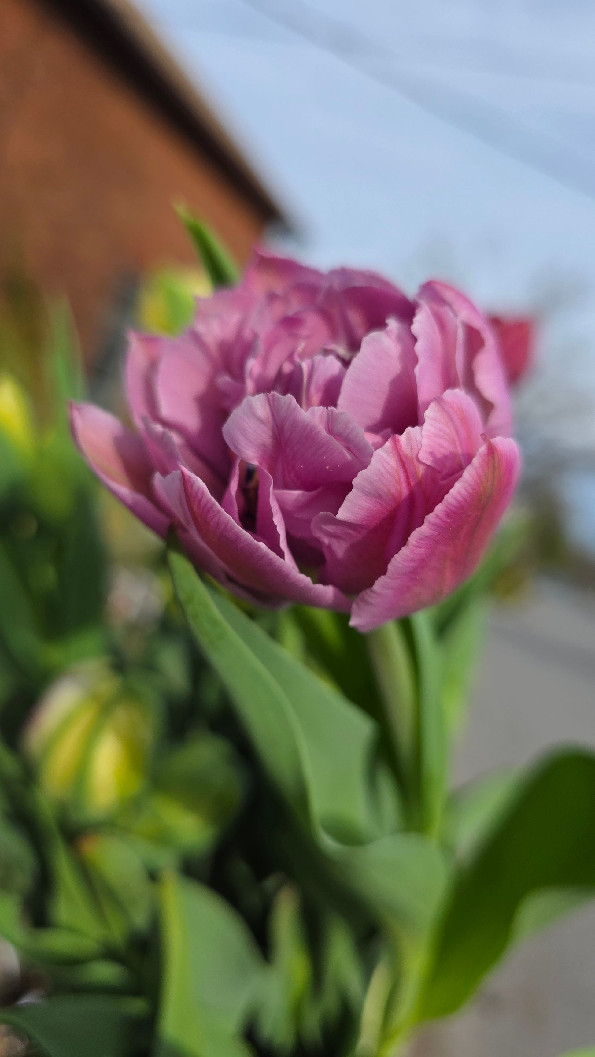 A double early tulip with big mauve, pink peony blooms! Plant now for spring blooms!